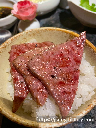 1인당 43,000원으로 양 등심, 양 갈비, 양 프렌치렉, 양 불고기, 양 샤브샤브, 양 스팸, 솥밥과 오차즈케까지 먹을 수 있는 곳