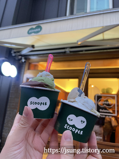 생각보다 너무 취한 우리는 디저트가 먹고싶어서 아이스크림으로 해장 선택! 주변에 젤라또 집을 찾다가 만난 곳인데 나는 말차맛, 초코맛, 단짝님은 헤이즐넛이랑 피스타치오였나... 디저트까지 완벽했음!!